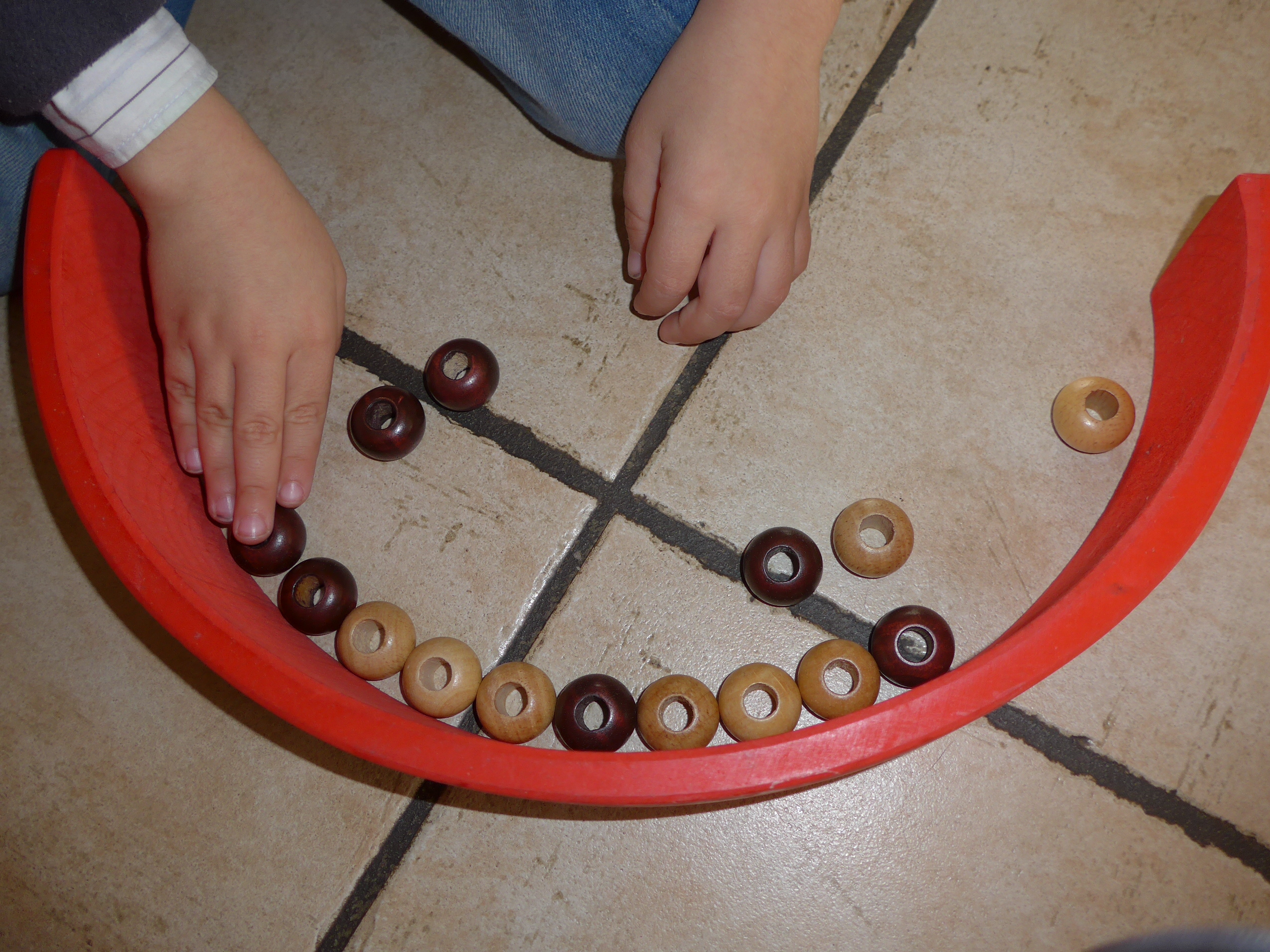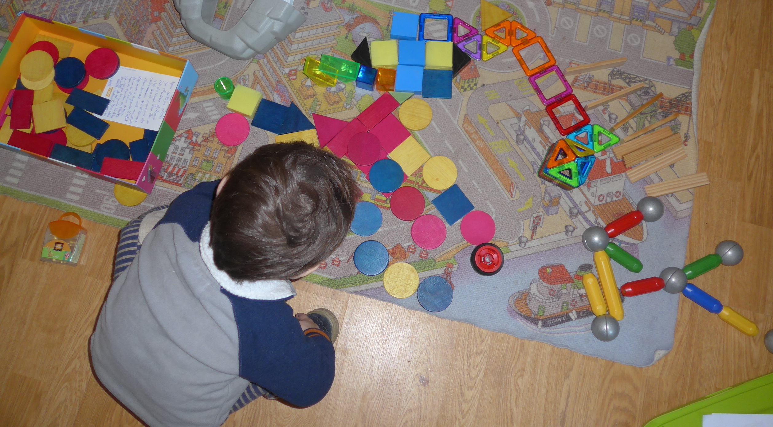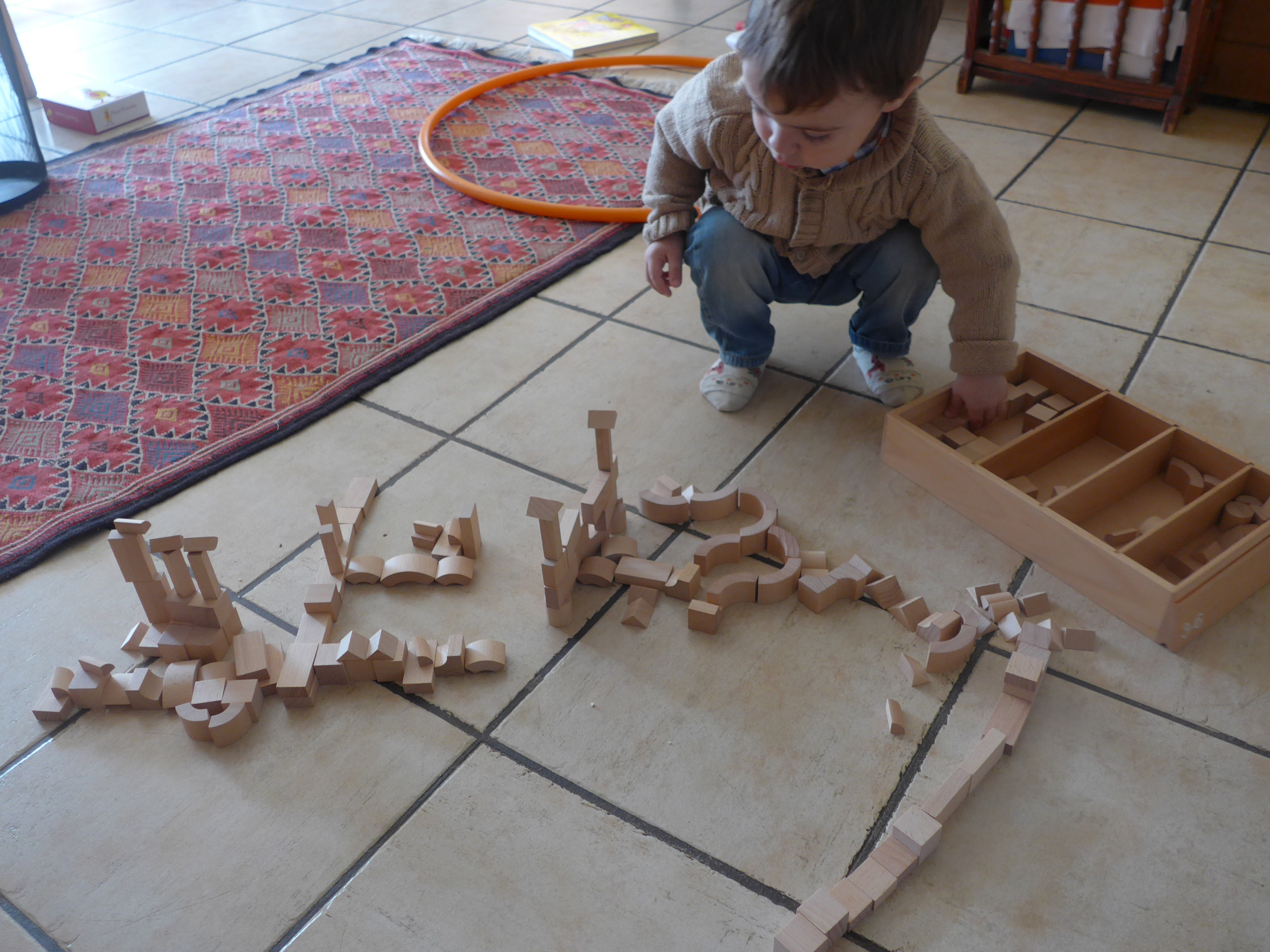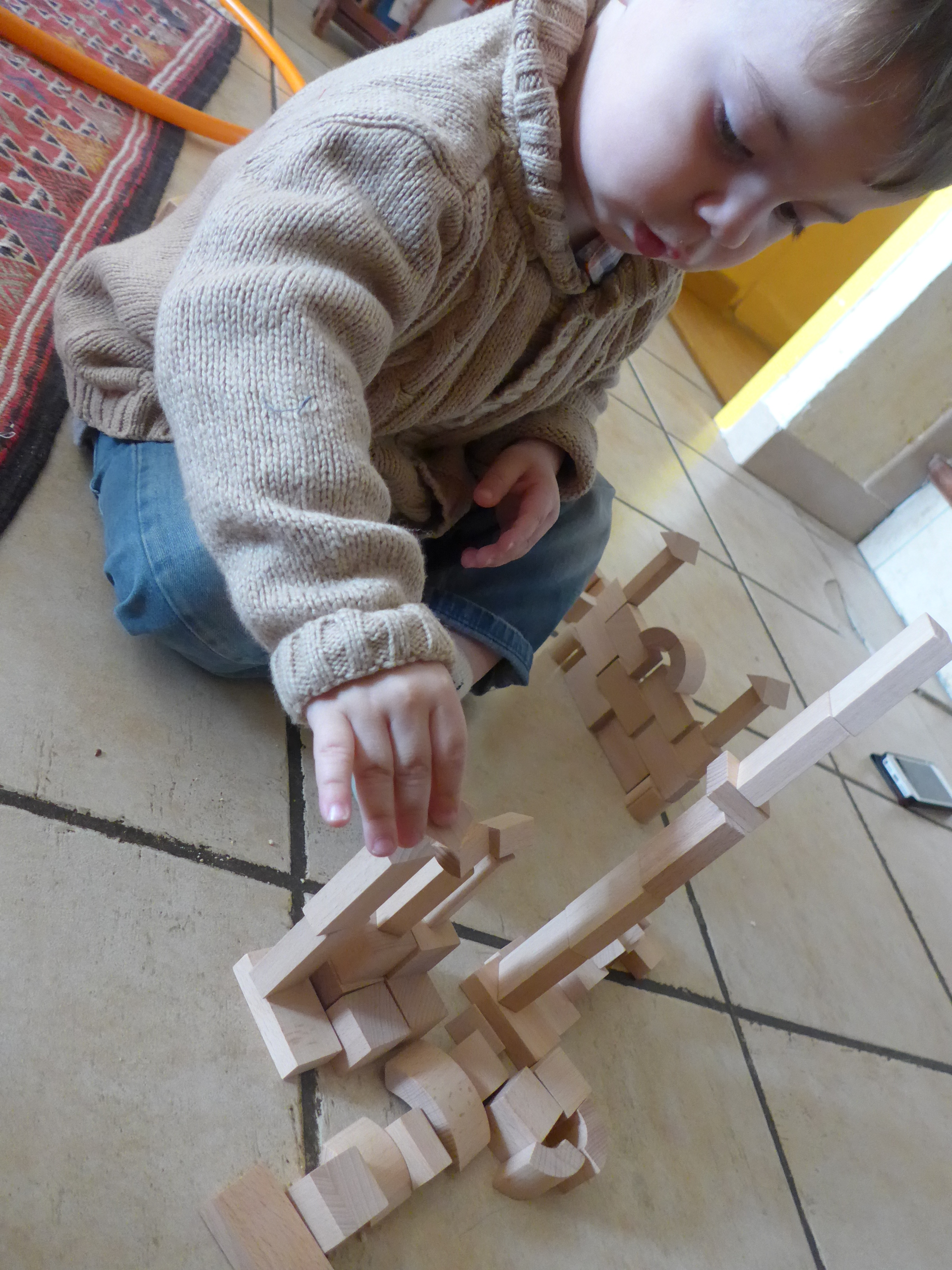 Décidément ce grand arc-en-ciel de Grimm’s, il aura servi ! Ca doit faire 4 ans et demi que nous l’avons (c’était pour les 2 ans de Noé) et les enfants y jouent toujours !