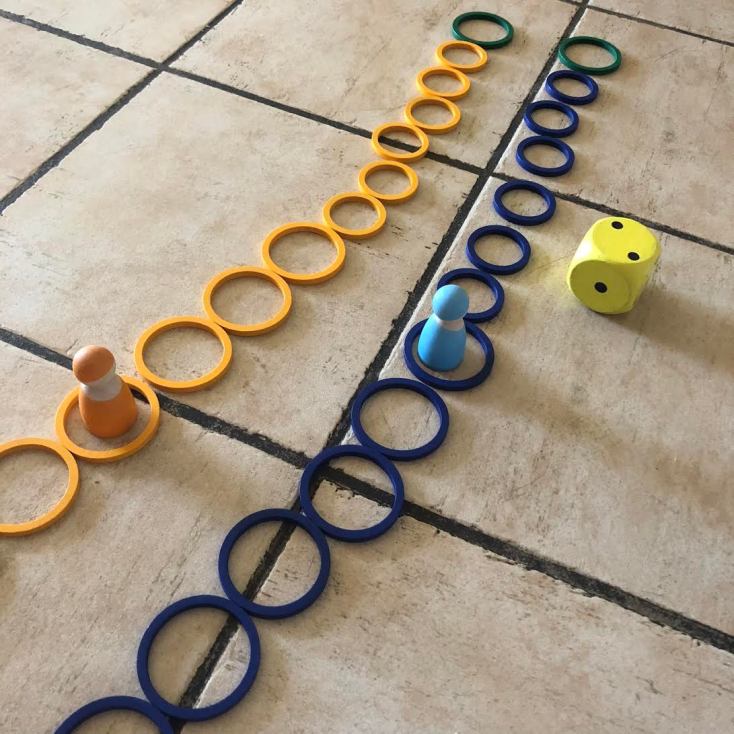 De la même façon, on peut réaliser une petite course ! Chacun son chemin, on lance le dé et l’on avance du bon nombre de cases (0, 1 ou 2) et on essaye d’arriver le premier!