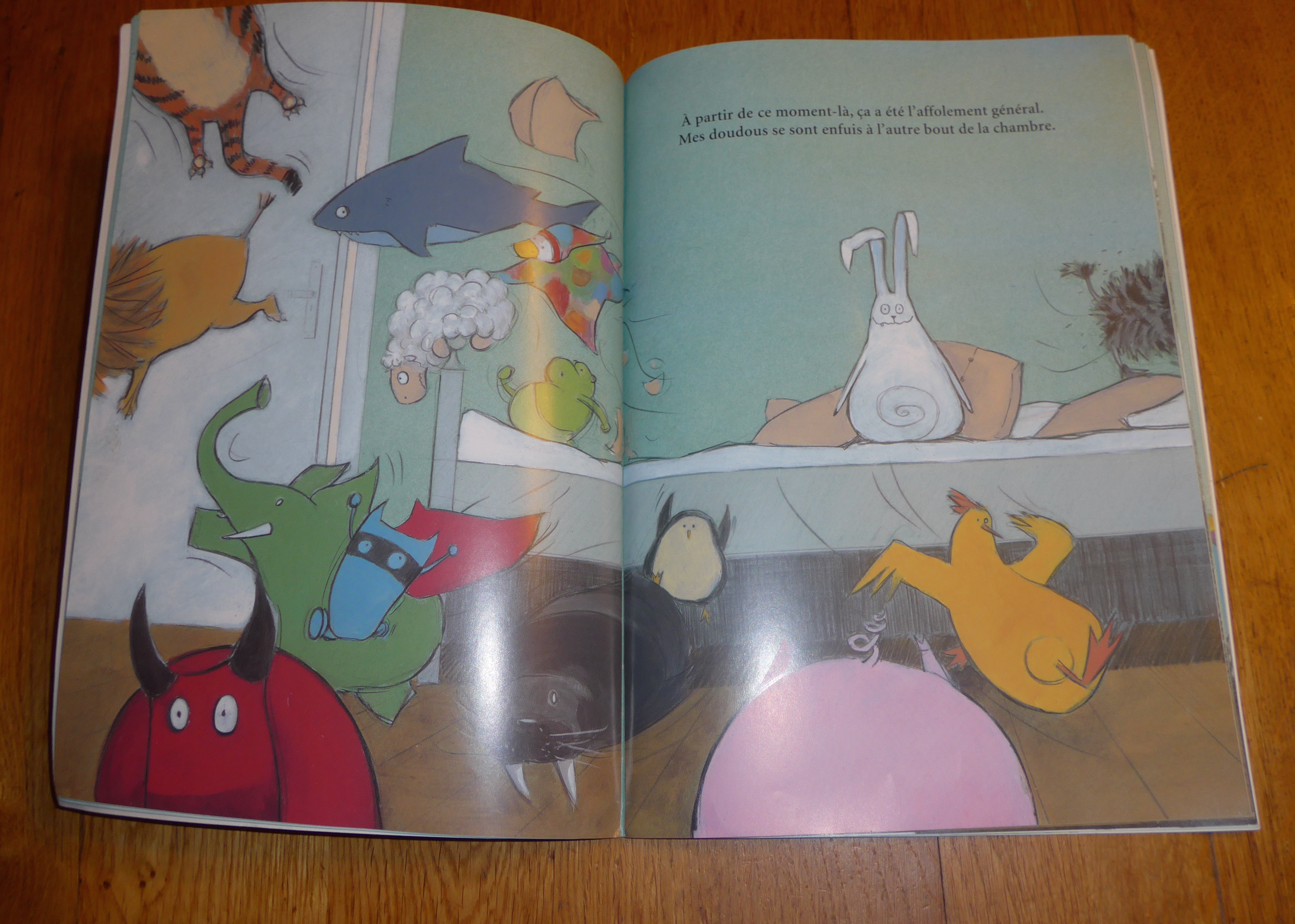 « C’est un monstre qui mange les doudous. Il s’est glissé vers Lapinot et gloups ! Et après les autres doudous ont compris que c’était un mange doudous.