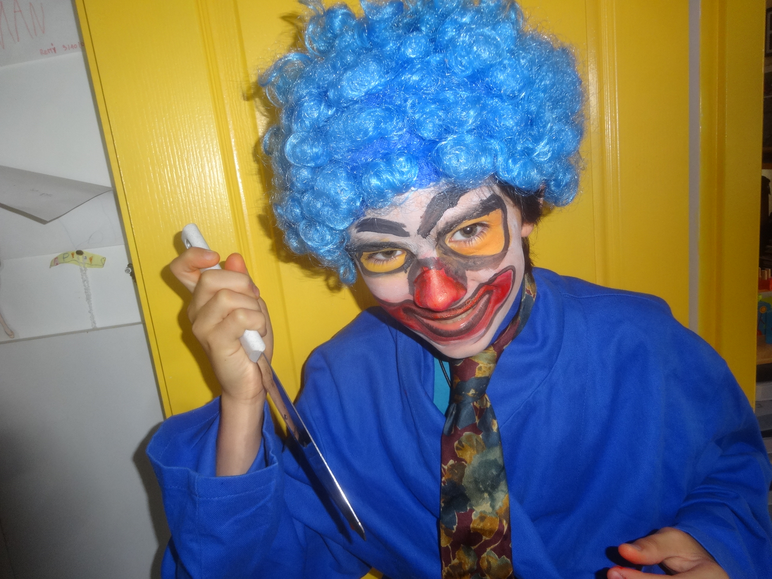 Puis Baptiste s’est amusé avec le maquillage à lui faire la barbe, un oeil au beurre noir …