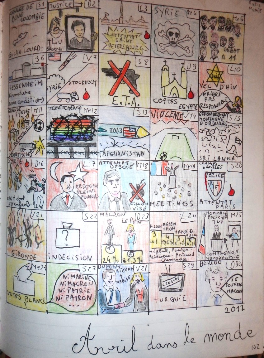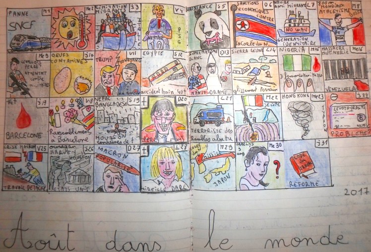 Grâce à la page Facebook « activités à la maison » et aux liens que l’on peut tisser avec les lecteurs, j’ai découvert un chouette défi qui s’intitule 100 jours 100 créations mis en place par Isabelle Robin. On peut le retrouver sur sa page Facebook « la pédagogie comme un chef » et sur sa chaîne You Tube. Il s’agit d’un défi qui nous guide pour réaliser une idée créative par jour sur un carnet. Ce sont des activités de dessin, peinture, collage pour nous aider à « décoincer » notre créativité et constituer un carnet d’idées et de pistes. Je le fais pour moi mais cela peut aussi inspirer toutes sortes d’activités pour les loulous !