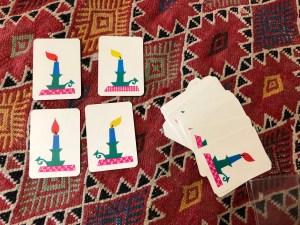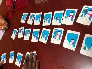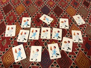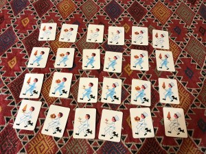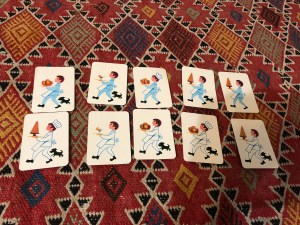 Ce jeu est donc jouable seul ou à plusieurs, adultes et/ou enfants ! On peut aussi avant de jouer enlever quelques cartes, soit que l’on n’a pas le matériel adéquat, soit qu’on les juge trop compliquées pour l’enfant.
