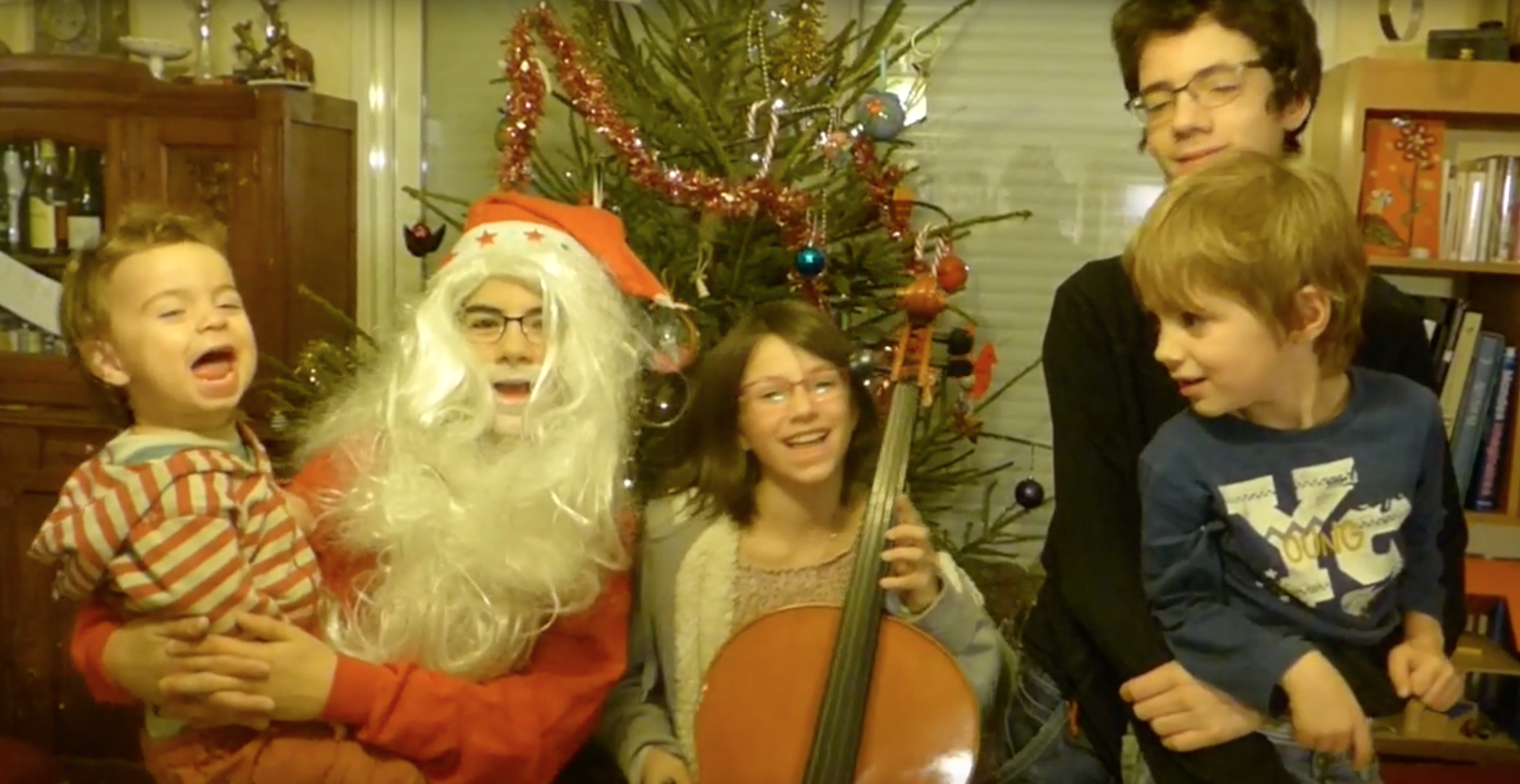 Et pour finir, des chants de Noël ! En fait, j’ai retrouvé Firmin et Noé installés sur le canapé avec le cahier de comptines de Firmin sur les genoux (avec les comptines de PS et MS !), Noé lisant et chantant les comptines du cahier, Firmin l’accompagnant !