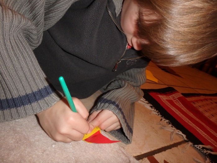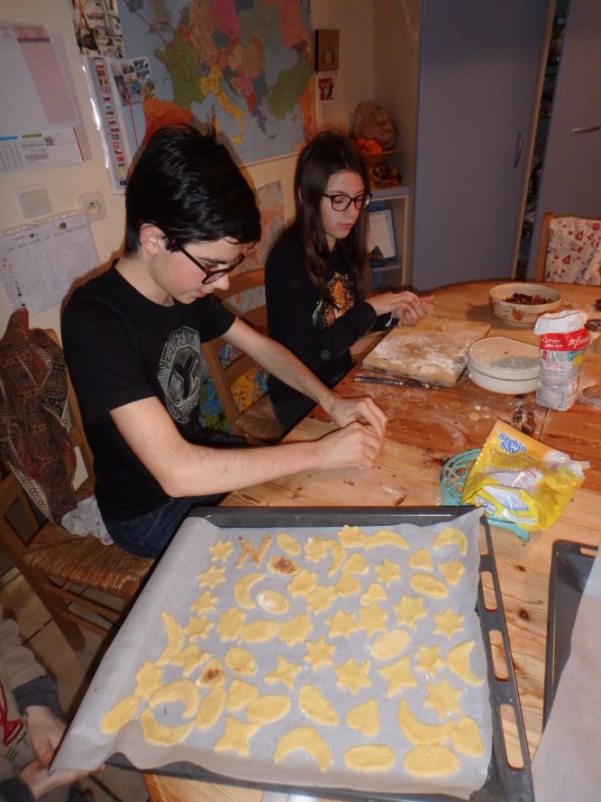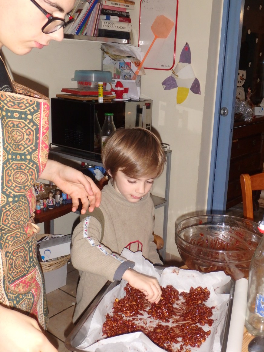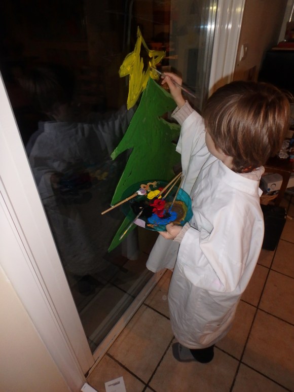 Ici, on est encore en pleins préparatifs car on s’y est mis un peu tard, avant, on était plutôt dans le trip « anniversaires de Noé et Firmin » qui sont nés les 10 et 14 décembre !