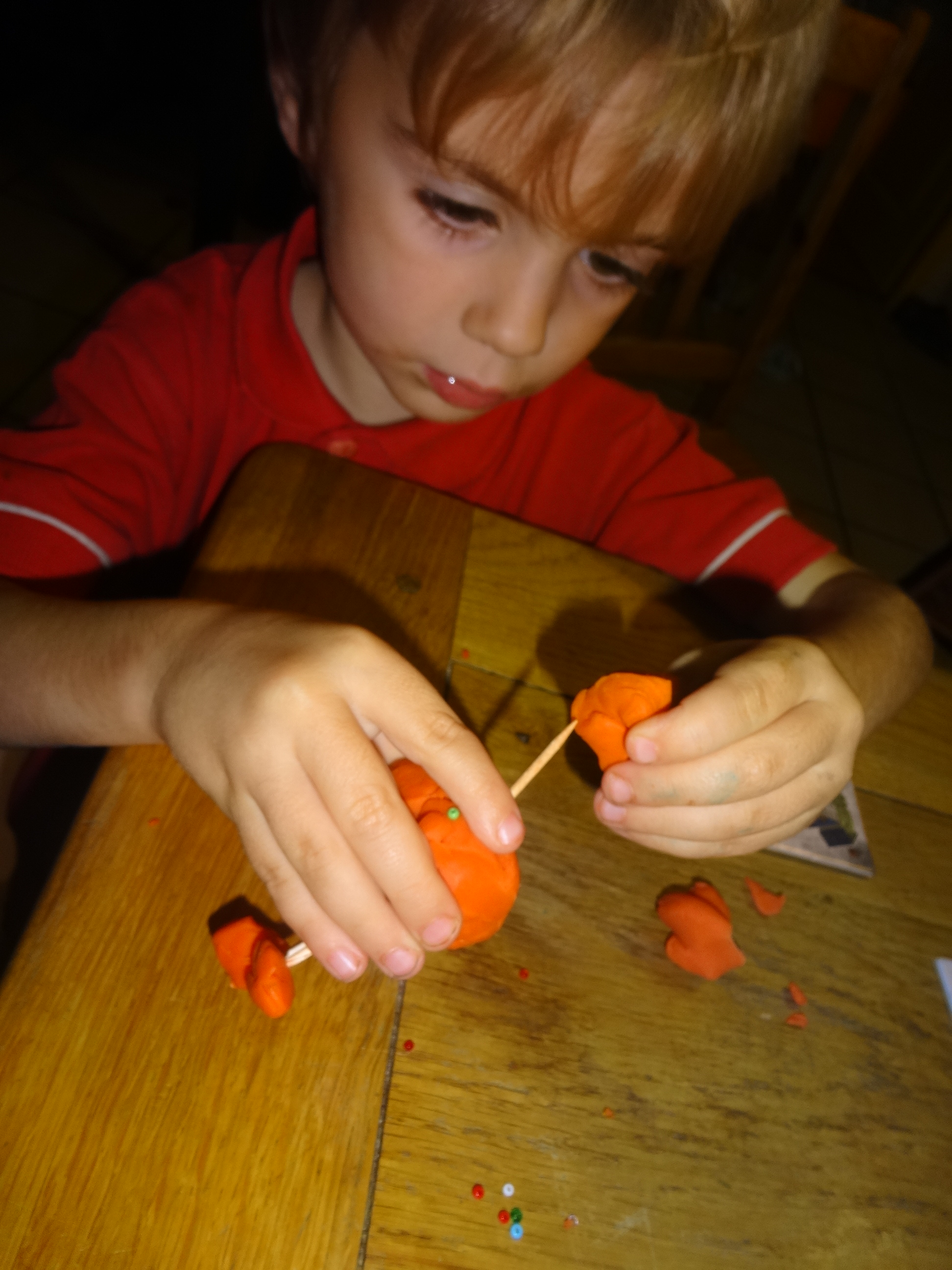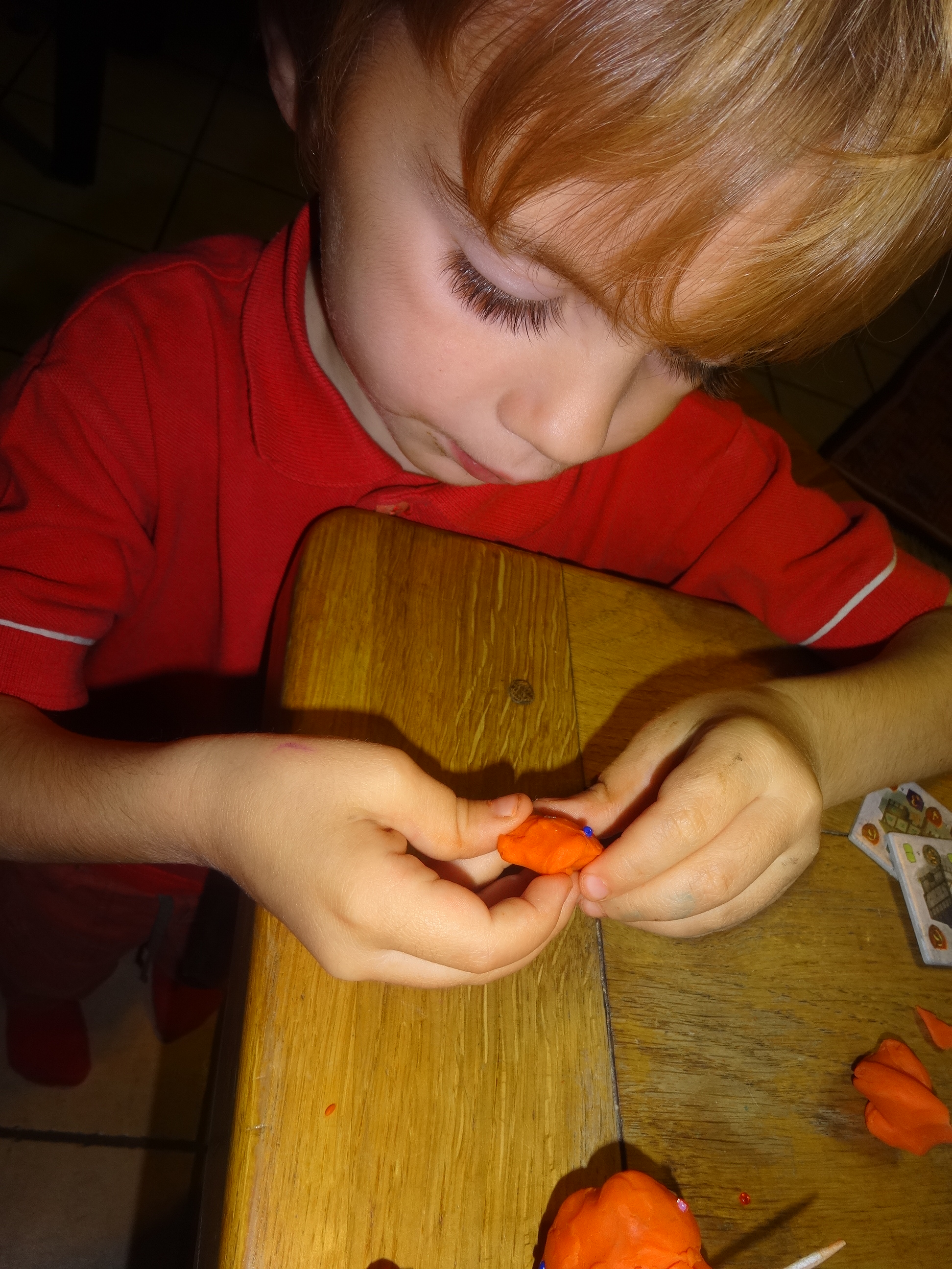 Edit : Je rajoute quelques photos car Noé a continué ses explorations avec la pâte à modeler et je ne veux pas faire un article sur le même sujet !
