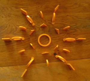 Ce que j’aime avec Spielgaben, c’est qu’il peut servir pour des activités très cadrées ou du jeu libre, pour une exploration méthodique d’un seul don ou le joyeux mélange de tout, pour un apprentissage géométrique, numérique ou autre ou juste pour le plaisir d’expérimenter des choses et de s’amuser !