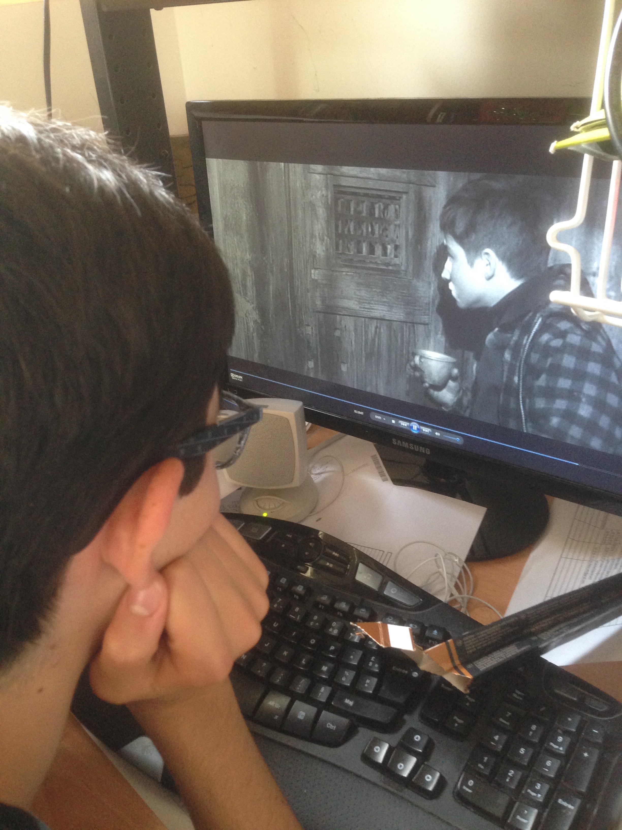 Baptiste rêve de devenir réalisateur (je vous ai déjà montré plusieurs de ses petites vidéos). Il a donc décidé de parfaire sa culture cinématographique ! Ainsi depuis quelques temps, il regarde film sur film ! Les 400 coups de Truffaut, des Charlot (le dictateur, le Kid, la ruée vers l’or …); le salaire de la peur de Clouzot, Play time de Jacques Tati, le voyage sur la lune ainsi que plusieurs autres petits films de Mélies, le chien andalou de Luis Bunuel …
