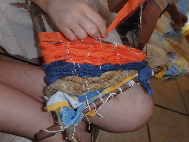 - Coller des petits objets (boutons, plumes, pierres …)sur des bâtonnets esquimau collés en étoile