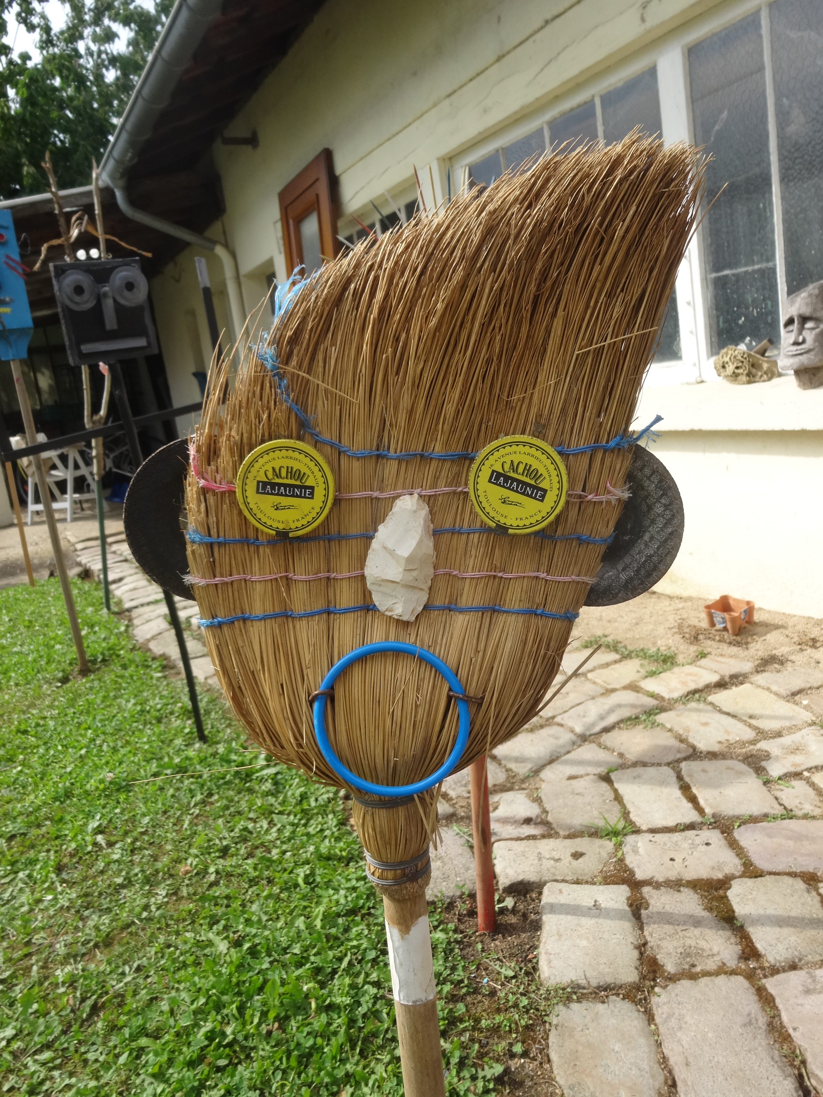 Totems en matériaux de récupération divers (bois, balai, grillage, métal …)